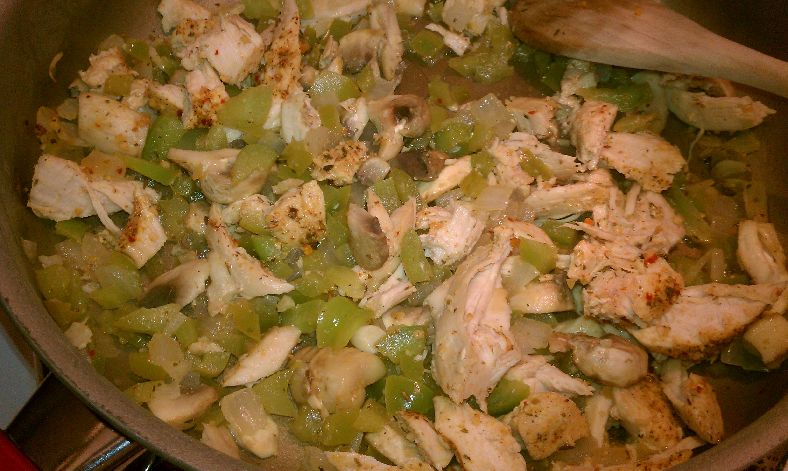 Chicken Fajitas Prep Time:10 minutes Cook Time: 20 minutes 1/2 c minced red or white onion 1 c minced Mushrooms 2 tsp Olive Oil 3/4 tsp basil 1-2 c cut up chicken breast bag of whole wheat tortillas 1. Cook chicken breast to desired liking in oven at 400 degrees 2. In sauce pan on high heat cook mushrooms, bell peppers, and onions ****Note you are allowed to add/subtract any type of veggies into your fajitas! 3. Cook veggies on high heat for just a few minutes (just to brown them) add desired spices 5. Cut up cut chicken and add it to the veggies. 6. heat tortillas or serve fajitas on tortillas right out of the bag Home Made NoN Fried Tortilla chips Before: